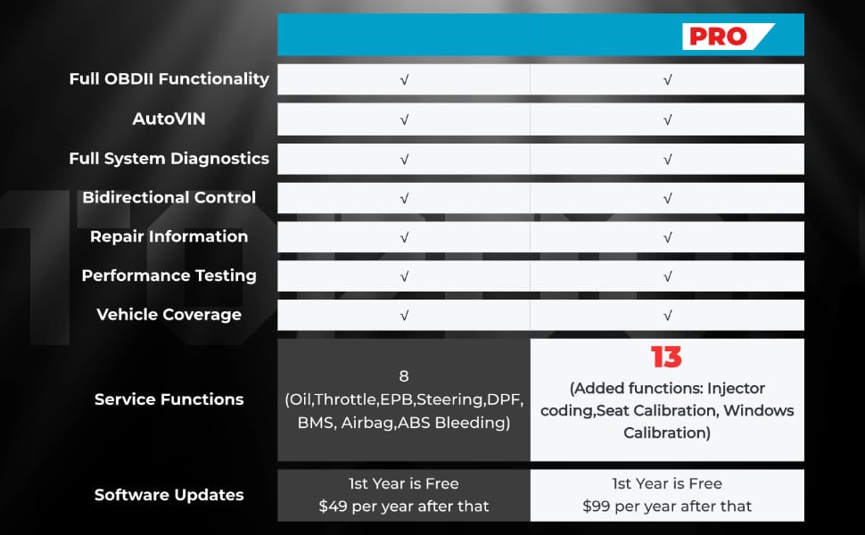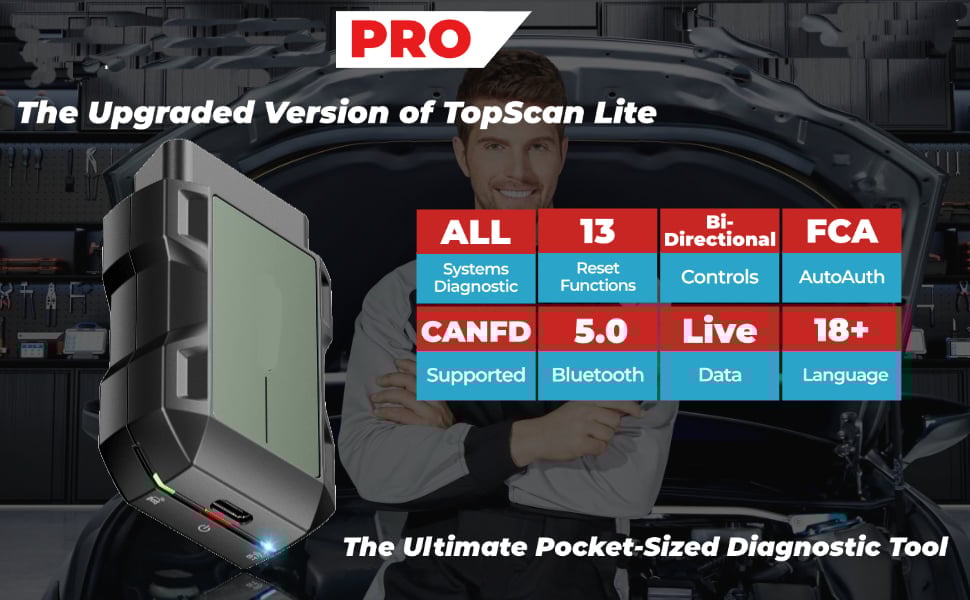 The Pro goes beyond the Lite version with added features that cater to advanced diagnostics and vehicle servicing: